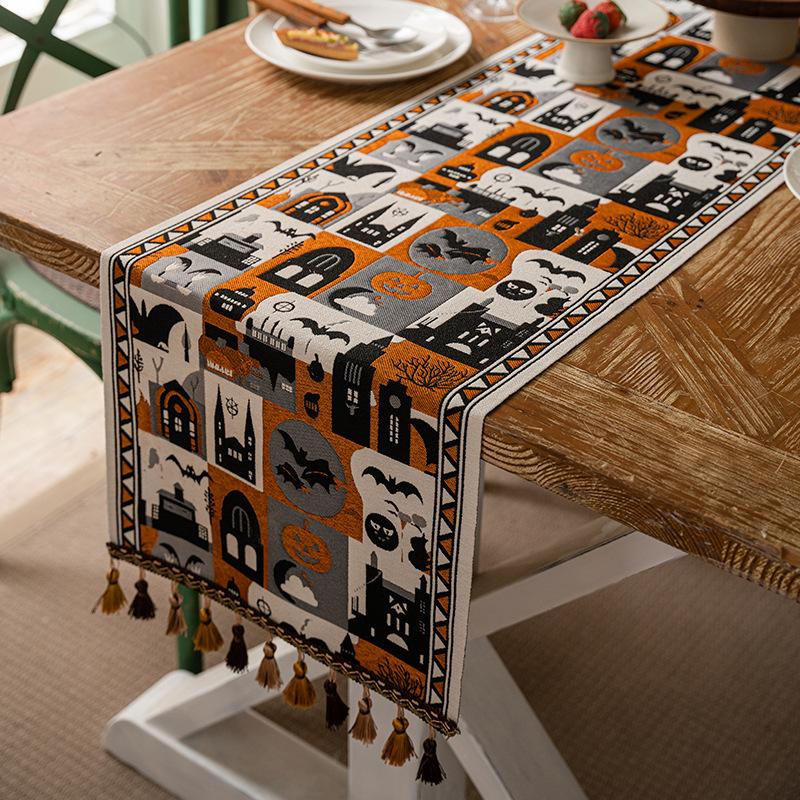 Halloween Jacquard Table Runner Festive Party Decor Atmosphere Dining Table Cover