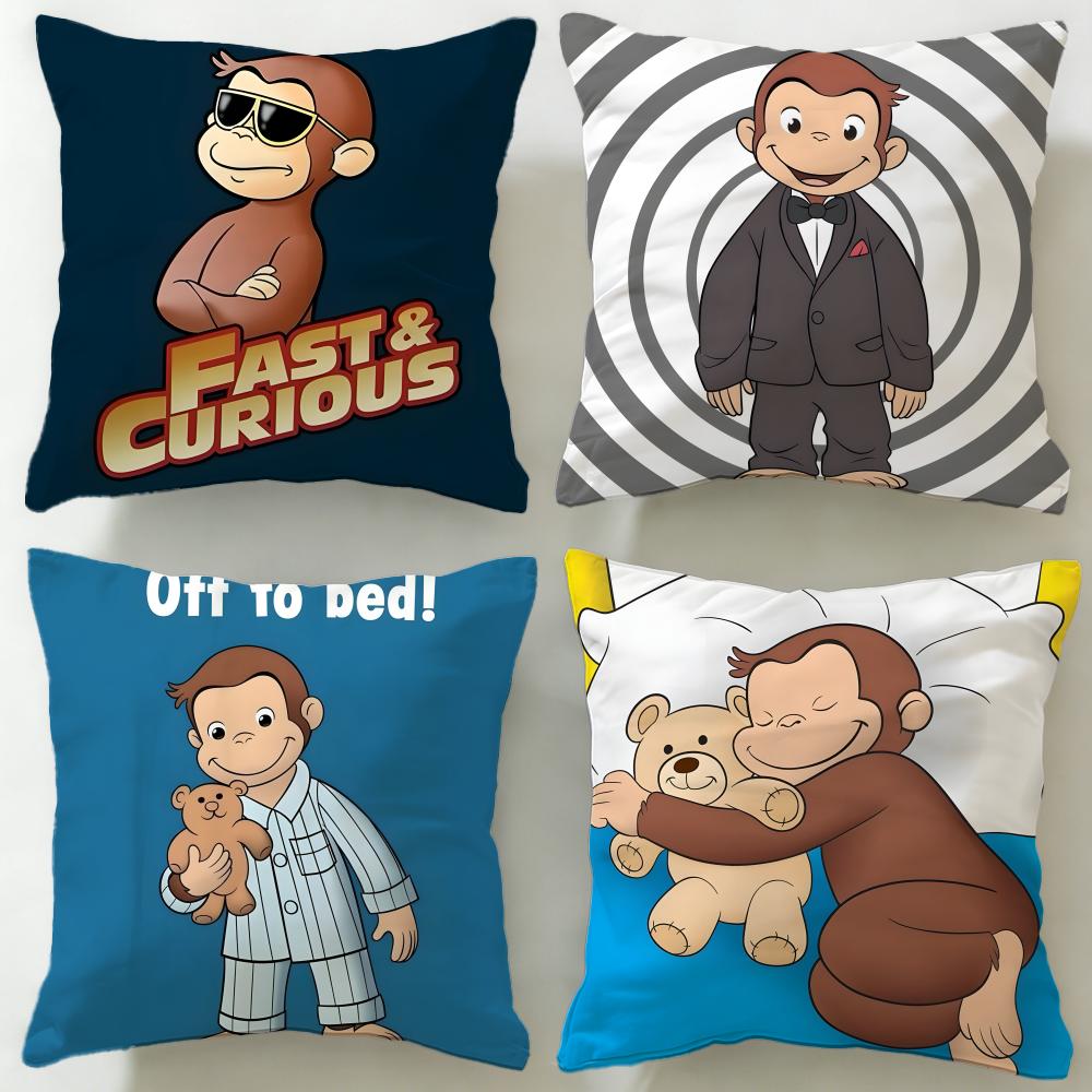 classic cartoon Curious George Cushion Cover Soft EasyWash Pillow Case Versatile for Couch Bed Travel and Office