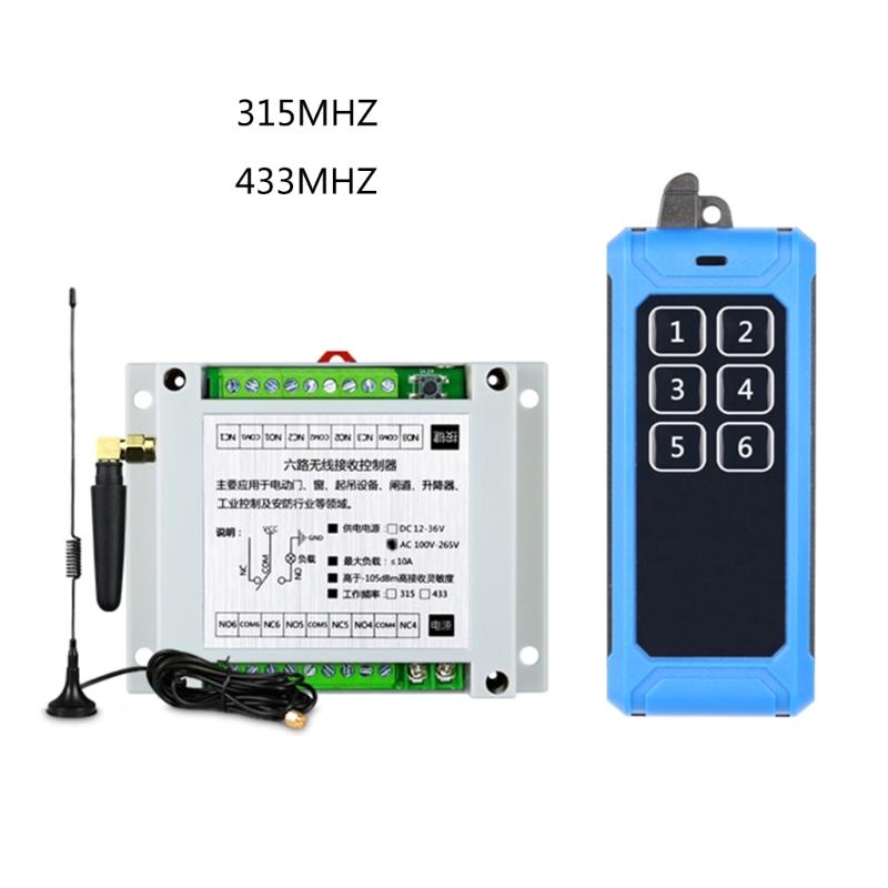 315Mhz/RF433Mhz Wireless Remote Control Switch DC 12V-24V Relay 6CH Receiver Controller and 6Button Transmitter