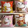 classic Neko Rich Luck Money Cat Cushion Cover Soft EasyWash Pillow Case Versatile for Couch Bed Travel and Office