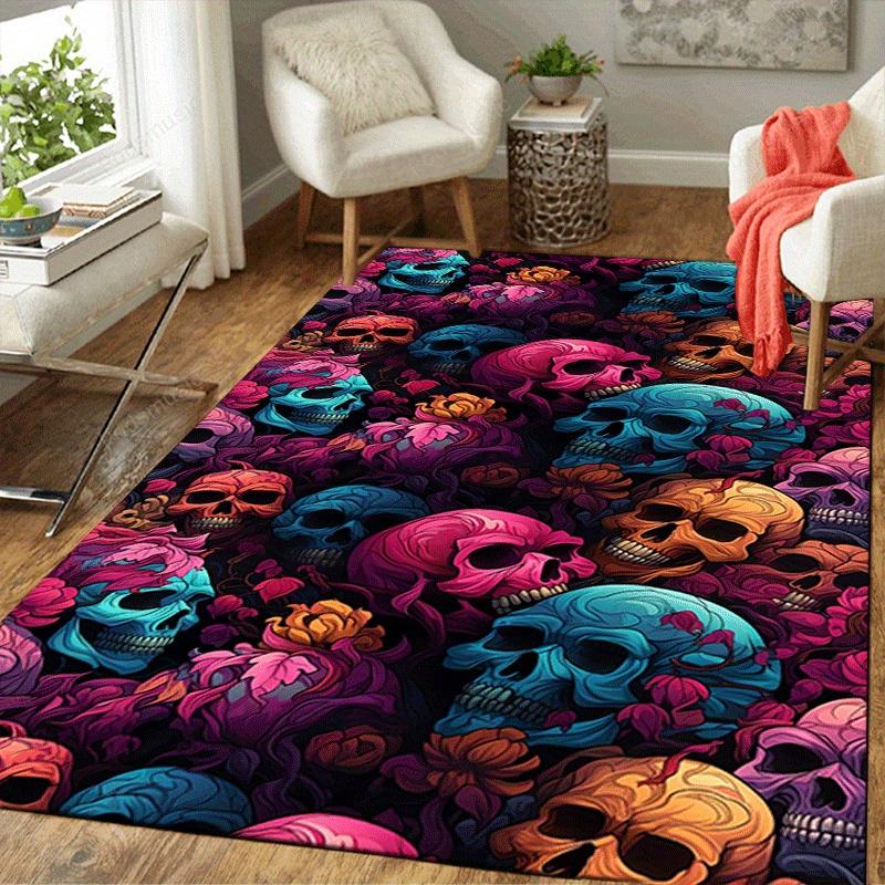 1pc Flowers and skulls Design Area Rug - Soft, Anti-Slip, and Durable Gaming Room Decor for Bedroom