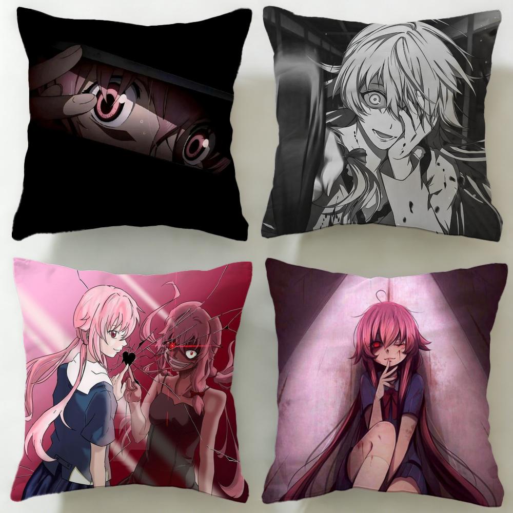 classic anime Mirai Nikki Cushion Cover Soft EasyWash Pillow Case Versatile for Couch Bed Travel and Office