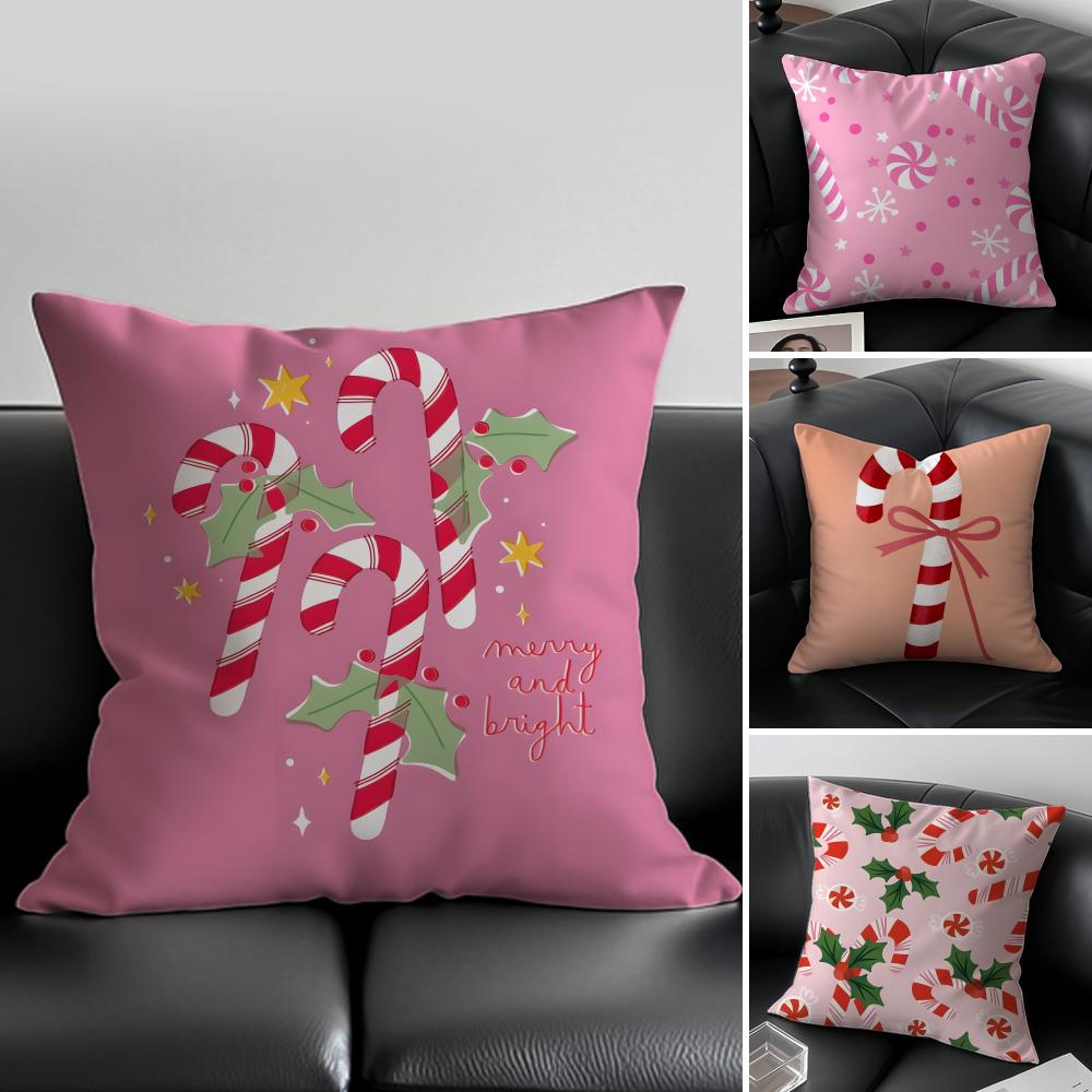 Christmas Candy Cane Holiday Cushion Cover Pillow Case Antidustmite Invisible zipper silky plush cushion