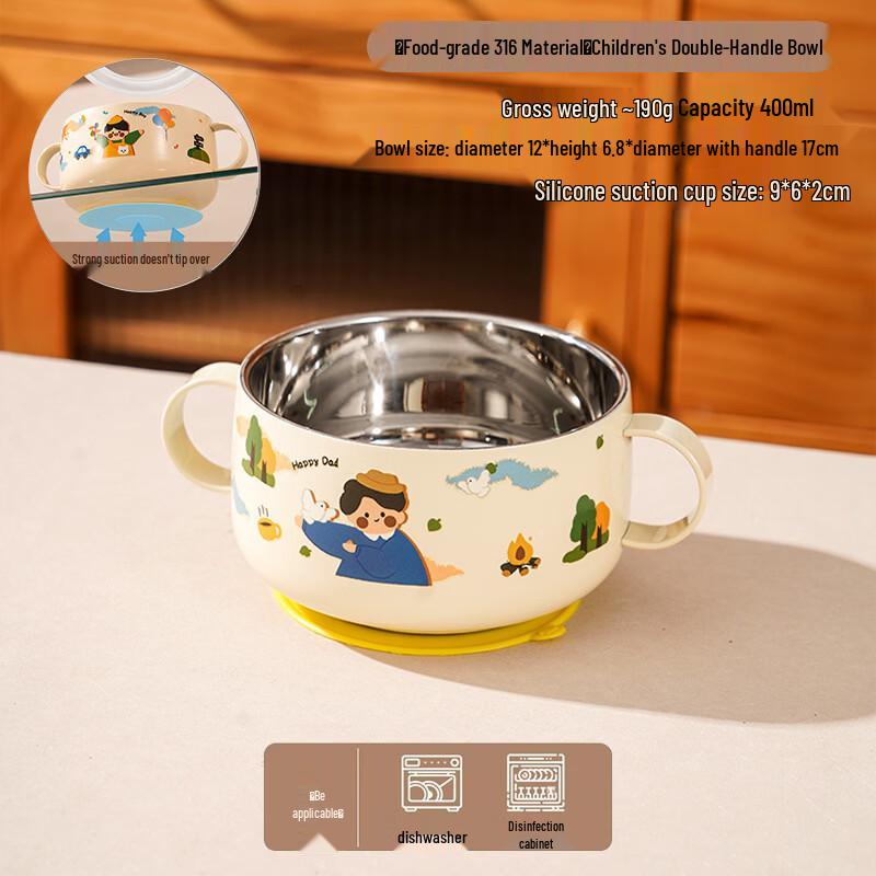 ZISIZ Cartoon 316 Stainless Steel Double-Layer Anti-Scald Bowl