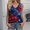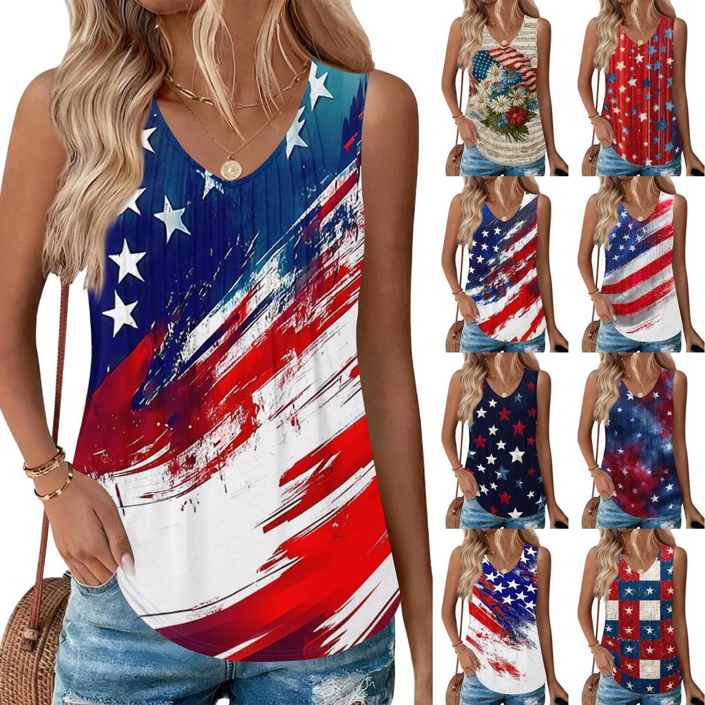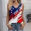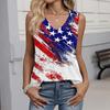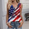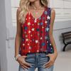 Women's Fashion Casual American Independence Day Flag and Stars Print V-neck Ruffled Sleeveless Vest T-shirt Top