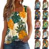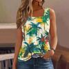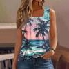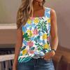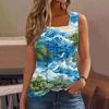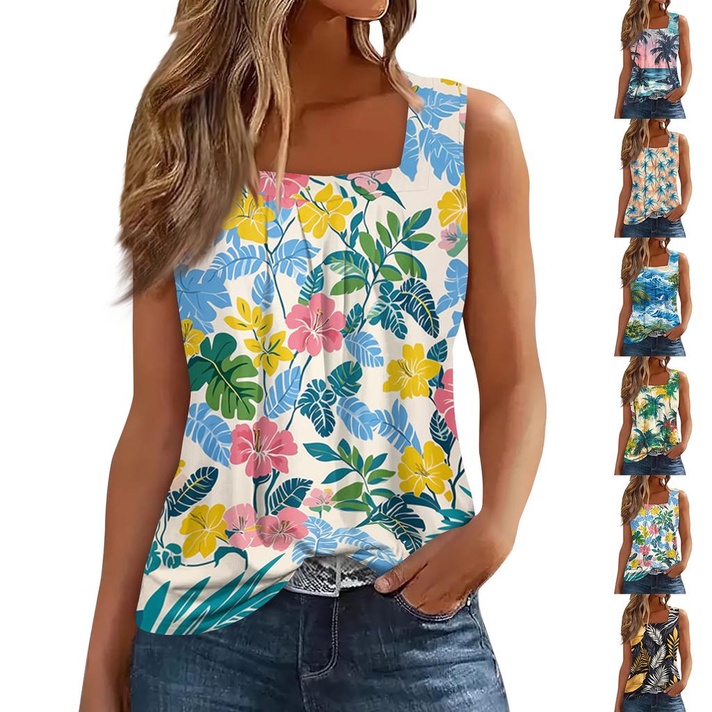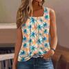 Dámské letní ležérní plisované tílko bez rukávů se čtvercovým výstřihem s potiskem