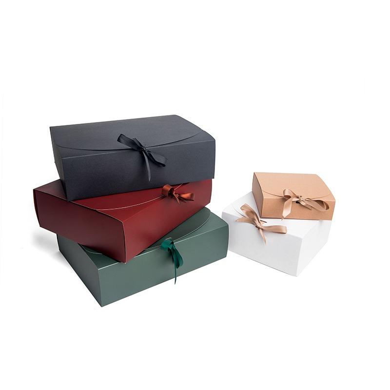 Black Folding Gift Present with Lid Luxurious Red Ribbon Cardboard Gift Boxes Wedding Graduation Gift Anniversary Birthday Souvenir Packaging Box