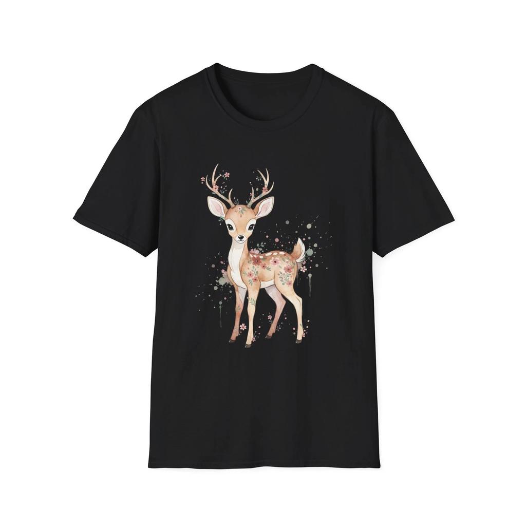 Deer Floral Watercolor Boho Black Tee Nature Aesthetic T-Shirt
