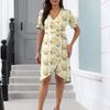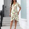 Beach Dresses For Women Spring Summer Elegant Wrap V Neck Floral Boho Dress Flowy Ruched Hawaiian Maxi Dress