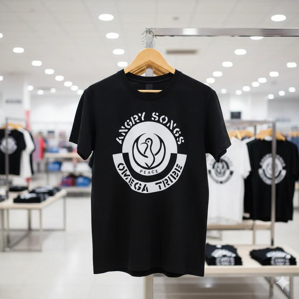 Angry Songs Omega Tribe Peace Logo Graphic T-Shirt Black Punk Rock Style - T742