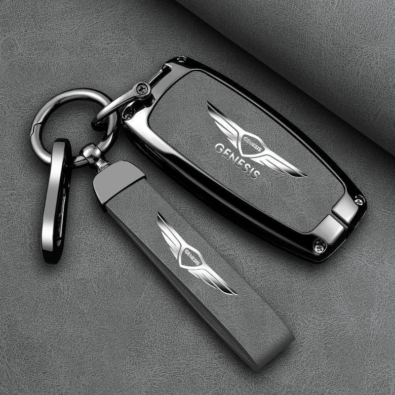 Leather Car Key Case Full Cover Protection Shell Keychain Accessories For Hyundai Genesis G80 GV70 GV80 GV90 2019 2020 2021 2022