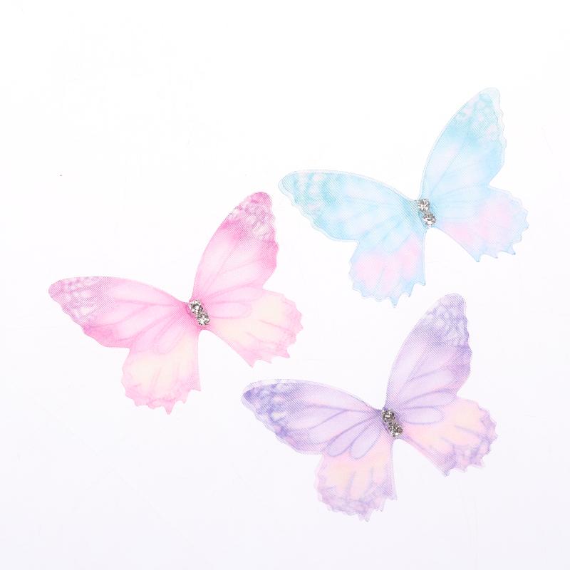 50Pcs 3D Organza Fabric Butterfly Appliques Gradient Color Double-Layer Simulation Mesh Butterfly Patch Translucent