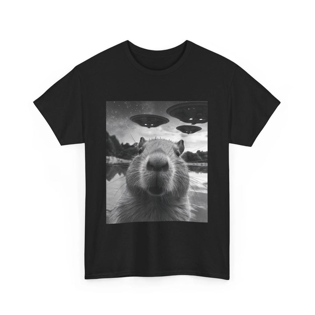 Vtipné grafické tričko Kapybara Selfie s UFO Divné tričko