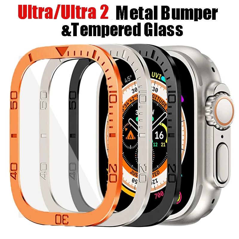 Screen Protector For Apple Watch Ultra 49mm Case Accessories Metal Cover Frame+Tempered Glass For iWatch Ultra 2 49mm Bezel Ring