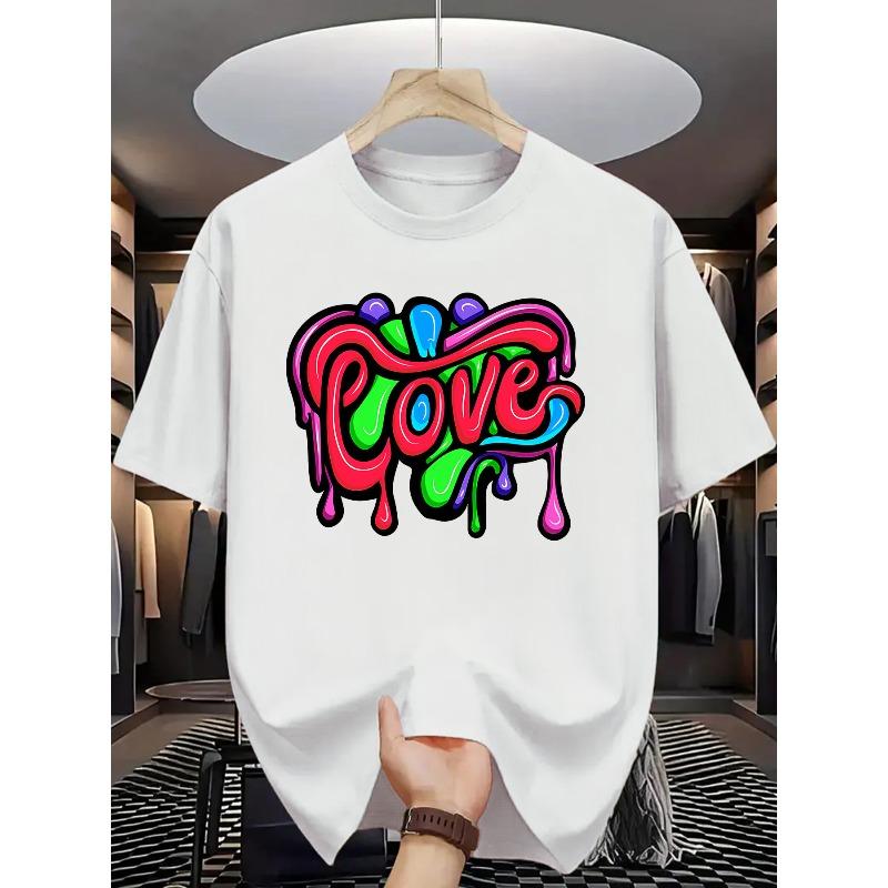 European Size Summer Men'S Fashion Short-Sleeve T-Shirt with Letter Pattern Print
