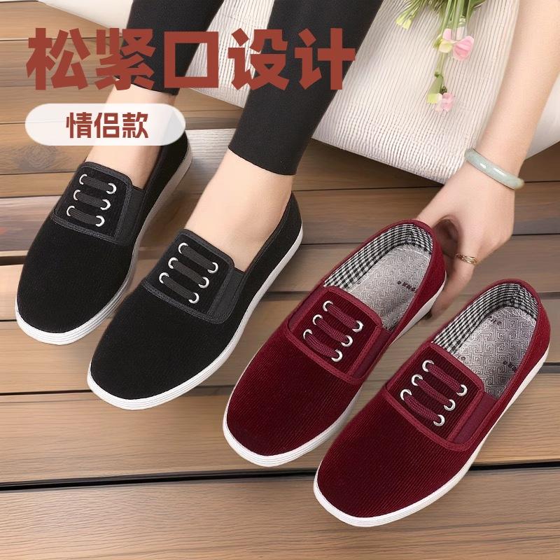 Spring and autumn couple cloth shoes velvet black cloth shoes soft sole wear-resistant work shoes versatile elastic mouth cloth shoes