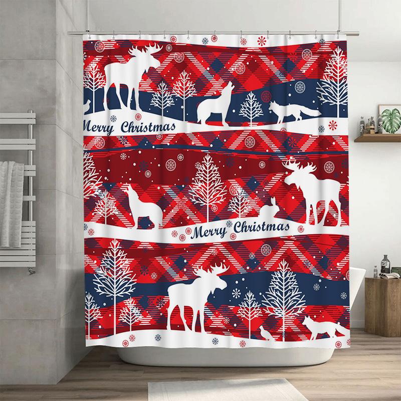 TU Festive Christmas Shower Curtain Reindeer Forest Holiday Bathroom Decor Deer Pattern Waterproof Fabric Home Textile