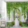 1pc Vibrant Garden Pathway Shower Curtain - Serene Garden Atmosphere with Colorful Flowers, Wooden Gate & Butterfly Sculpture