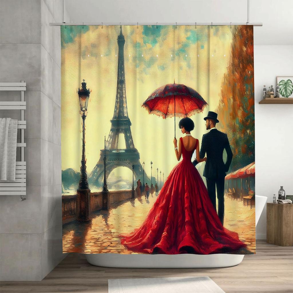 Romantic Paris Walk Artistic Waterproof Shower Curtain for Bathroom Decor, High-Quality Material and Easy to Clean