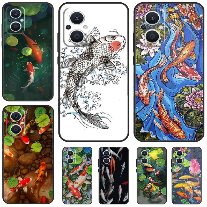 Koi Carp Fish Painting For OPPO Reno 8T 4Z 5Z 4 5 6 7 8 Lite 10 Pro OPPO Find X2 Lite X3 Neo X6 X5 Pro Phone Case