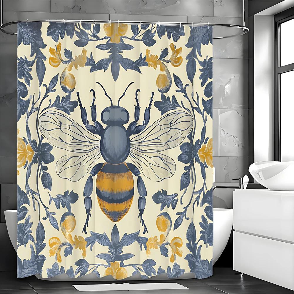 Bumblebee Bee Floral Shower Curtain, Bathroom Decorative Shower Curtain, Waterproof Shower Curtain with Hooks
