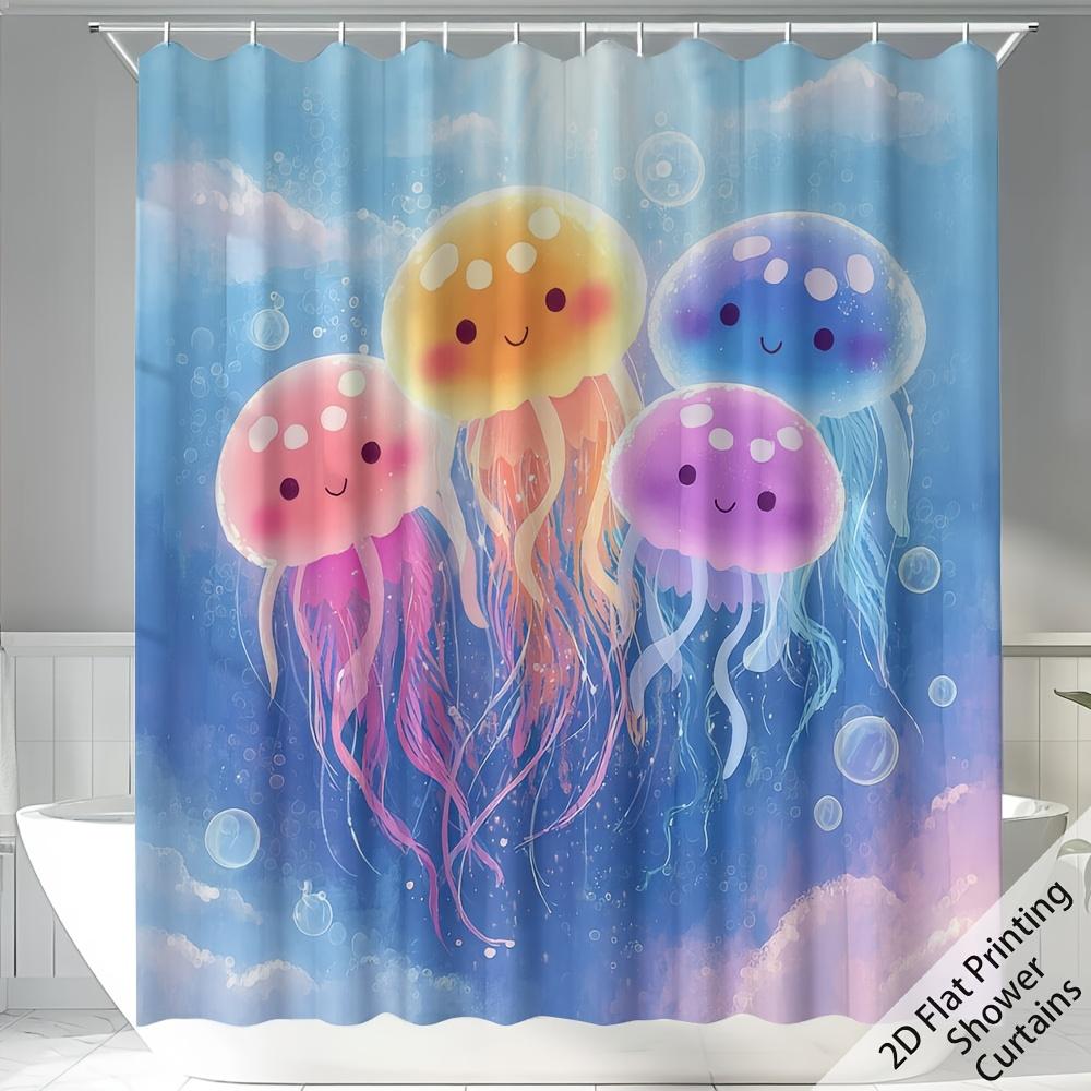1pc 1pcs Jellyfish Shower Curtain Suitable for Bathroom Decor - Marine-Themed Jellyfish Pattern, Soft Texture with 12 Hooks, M