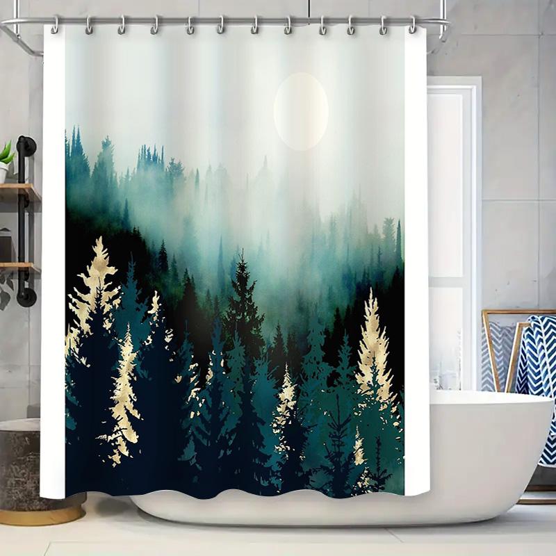 Forest Shower Curtain Nature Trees Woodland Landscape Backdrop Vintage Rustic Bathroom Decor Home Decor Artistic Wall Hanging