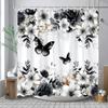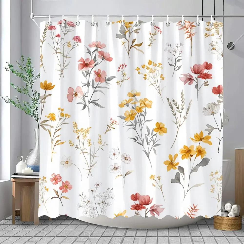 Květinová sprchová závěs Květinová látka Sprchové závěsy pro rustikální vintage koupelnový dekor Koupelnové závěsy Akvarelový šik Cosmos