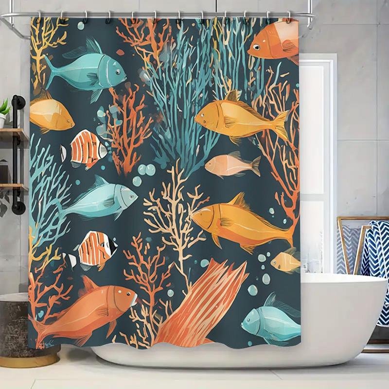 Colorful Fish Coral Shower Curtain Bathroom Decor Home Textiles Waterproof Fabric Ocean Underwater Scene