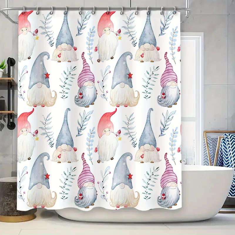 Watercolor Gnomes Shower Curtain Nordic Style Home Decor Waterproof Fabric Bathroom Accessories for Kids Room Decoration Pink Wh