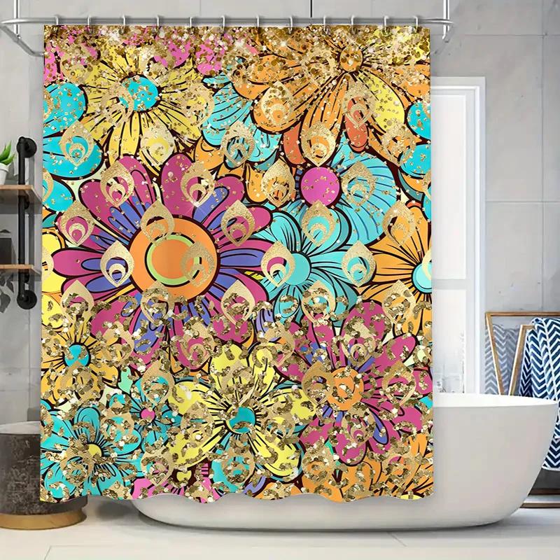 Colorful Floral Shower Curtain Modern Bathroom Decor for Home Decoration 3D Printing Waterproof Fabric Customizable Size Options