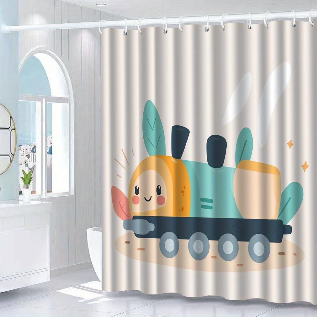 Cute Cartoon Train Shower Curtain - Polyester Woven, Machine Washable Home Decor Accessory, Playful Bathroom Partition