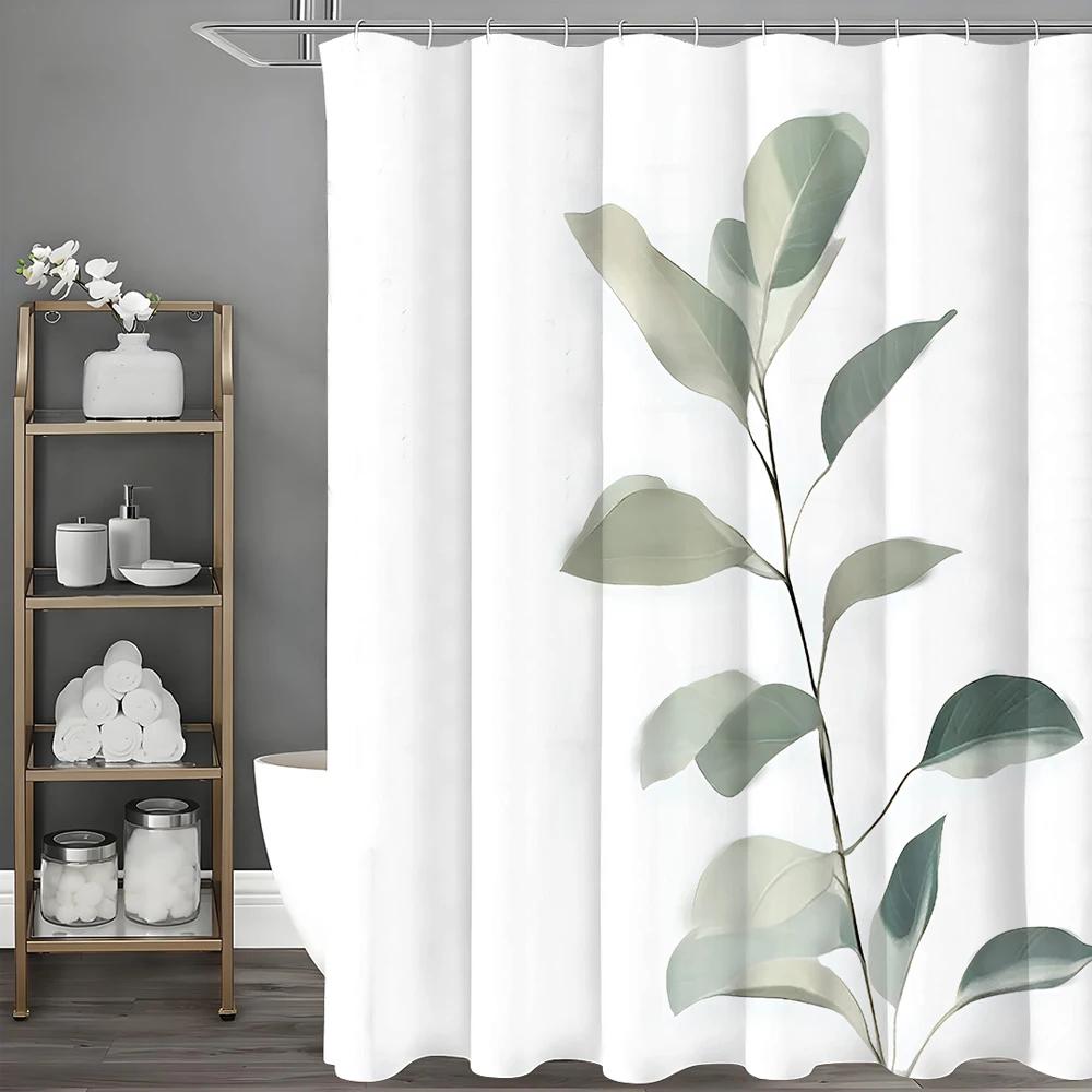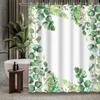 Sprchový závěs s eukalyptovými listy, Dekorační sprchový závěs do koupelny, Vodotěsný sprchový závěs s háčky