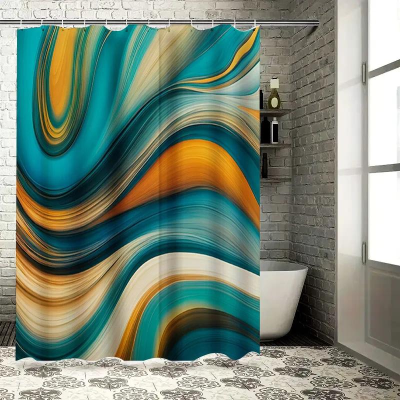 Luxury Modern Shower Curtain Wave Colorful Design for Bathroom Decor Waterproof Fabric with Metal Hook Rings Set (Blue)