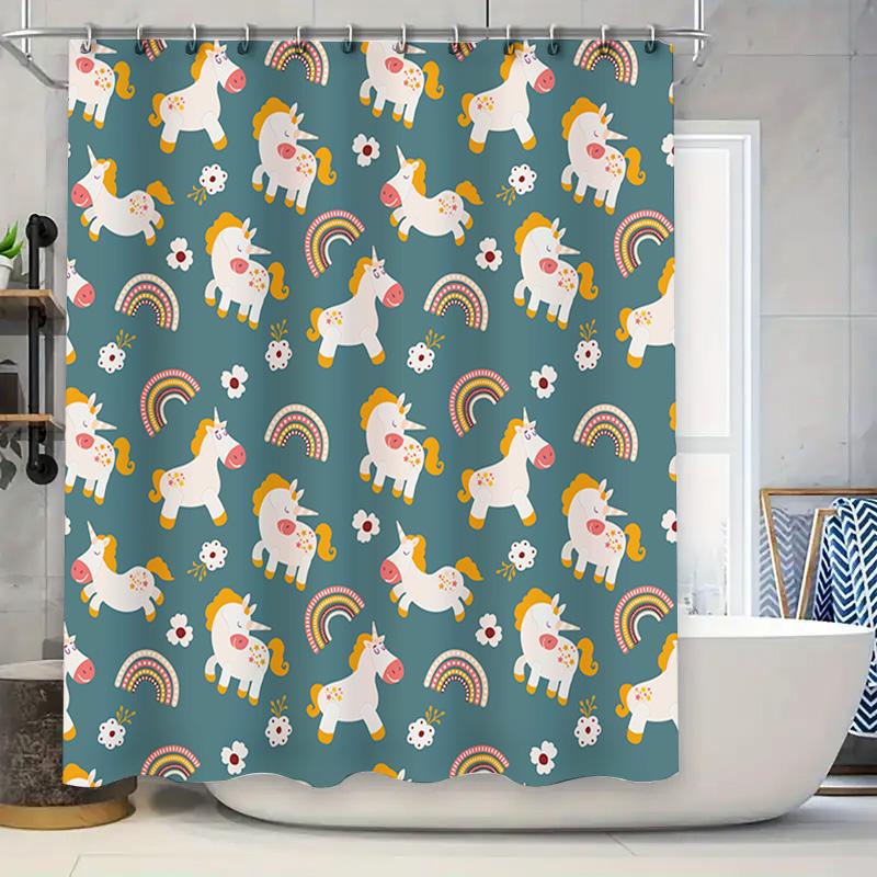 Cute Unicorn Shower Curtain Waterproof Fabric Home Decor Bathroom Supplies for Kids Room Multicolor (Green)