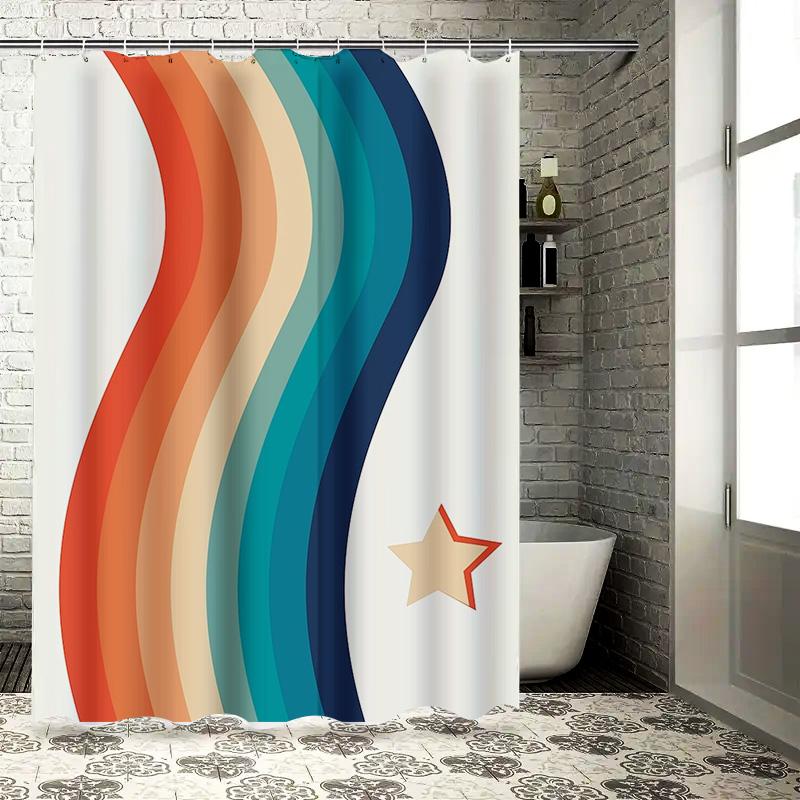 Colorful Shower Curtain with Waves Design Perfect for Bathrooms Decor