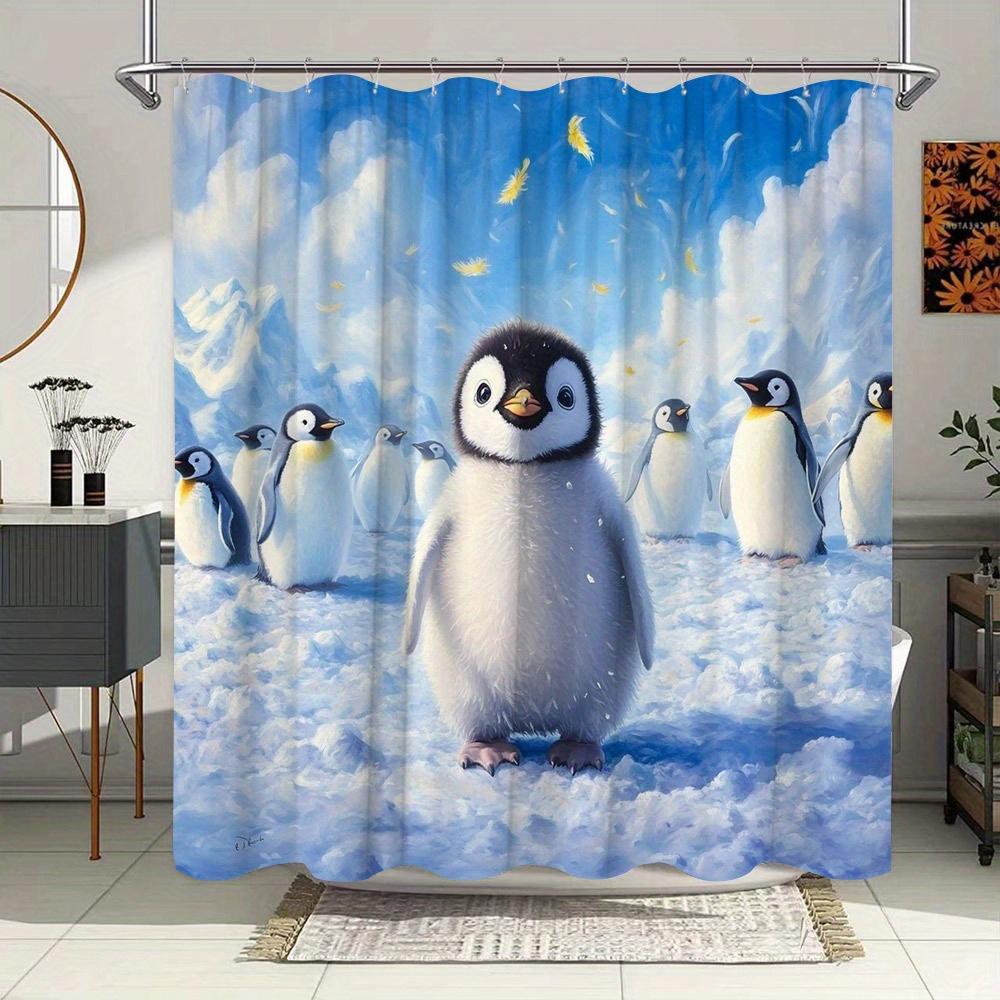 Adorable Penguin Shower Curtain - Waterproof, Mildew-Resistant with Charming Arctic Scene for Fun and Cozy Bathroom Decor