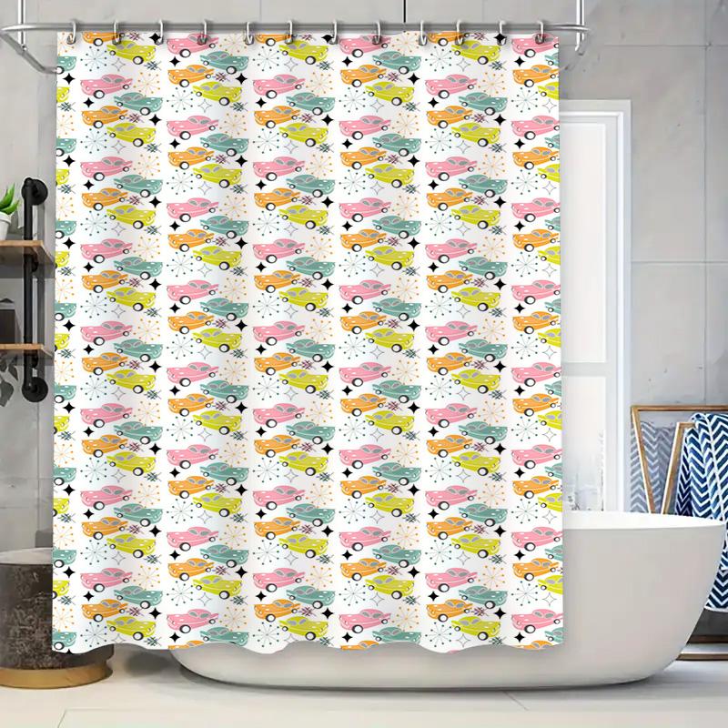 Bright Car Pattern Shower Curtain Waterproof Bathroom Decor Modern Printing Washable Fabric 180X245cm Pink Green Yellow Orange B