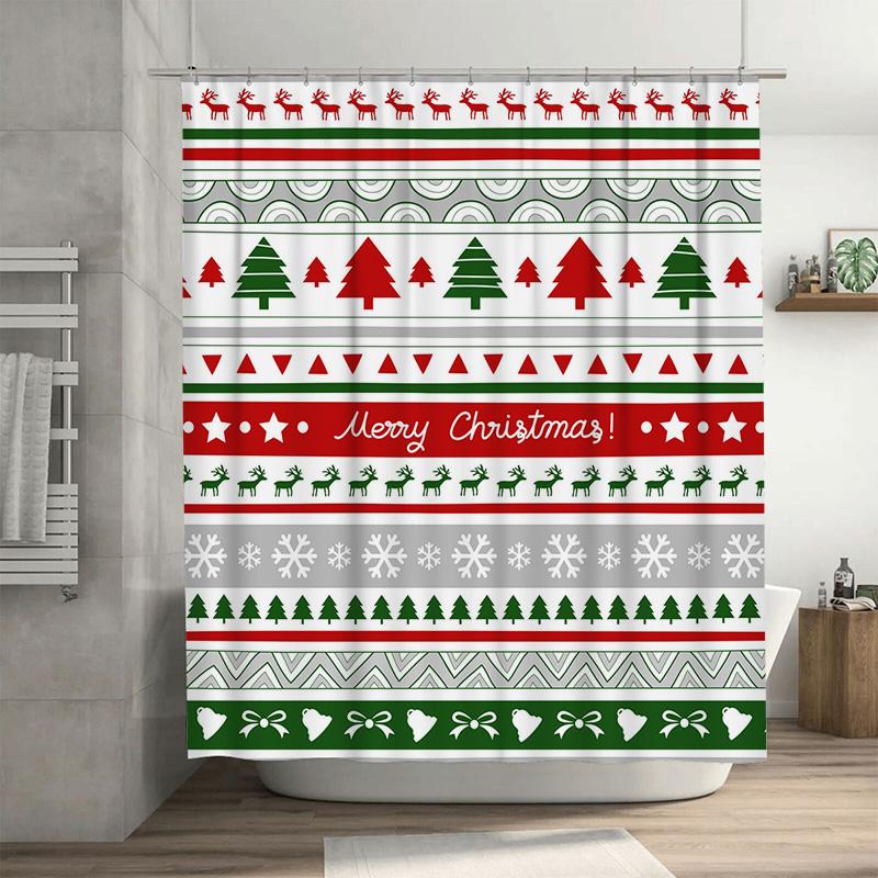 TU Christmas Shower Curtain Holiday Festive Waterproof Bathroom Decor Farmhouse Style Merry Xmas Pattern Backdrop Xmas Gift