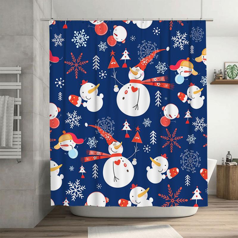 TU Winter Snowflake Shower Curtain Festive Holiday Bathroom Decor Christmas Pattern Waterproof Fabric Backdrop Xmas Home Decorat