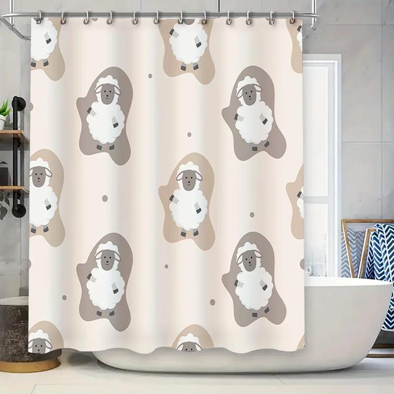 Rozkošný sprchový závěs s potiskem oveček pro dekoraci koupelny Růžová šedá barva Vodotěsná látka s přiloženými háčky Perfektní nápad na dárek