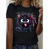 Women's Funny Fried Cat Cartoon T-Shirt with Playful Bow Butterfly Print Women's Casual Short Sleeve T Shirt Clothing Top Tee