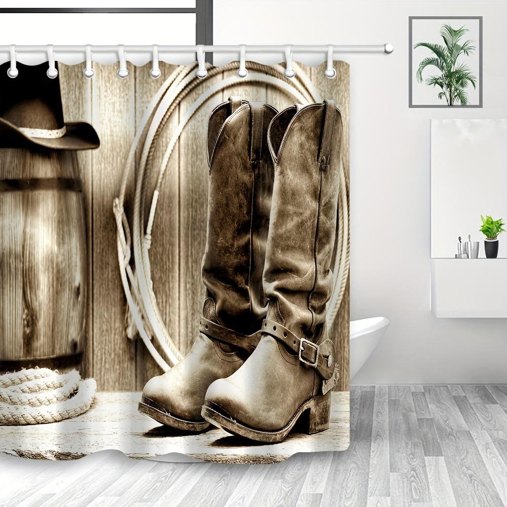 Western Cowboy Saddle Ranch Barn Shower Curtain, American Traditional Style, Polyester Bathroom Decor | Bath Curtain Accessory