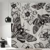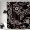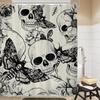 Gothic Skull Shower Curtain Bathroom Set Halloween Death Head Moth Pink Flower Leaves Spider Scary Witchy Bath Accessories