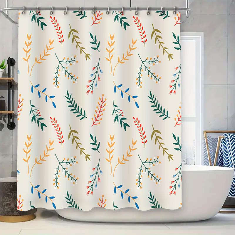 Modern Style Bath Shower Curtain with Floral Print Multicolored Leaves Decorative Liner for Bathroom Perfect Gift Idea (White Ba