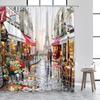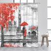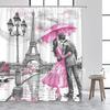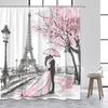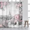 Vintage Paris Tower Shower Curtain Pink Floral Romantic Lovers City Street Scenery Modern Fashion Bathroom Curtains Fabric Decor