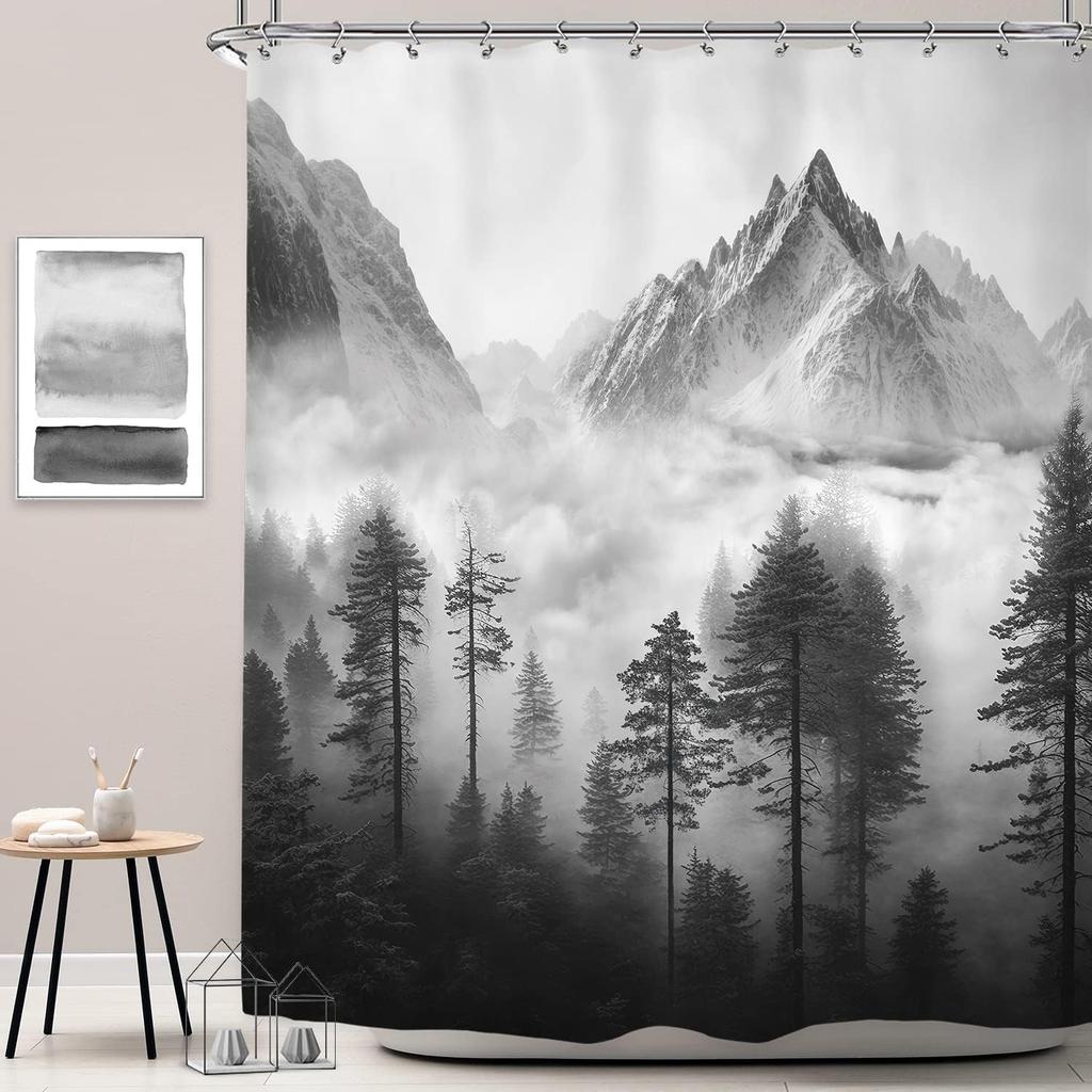 Černá Hora Les Mlhavá Sprchová Závěs Přírodní Scenérie Krajina Koupelnová Dekorativní Sprchová Závěs 12 Háčků