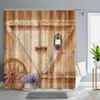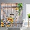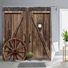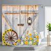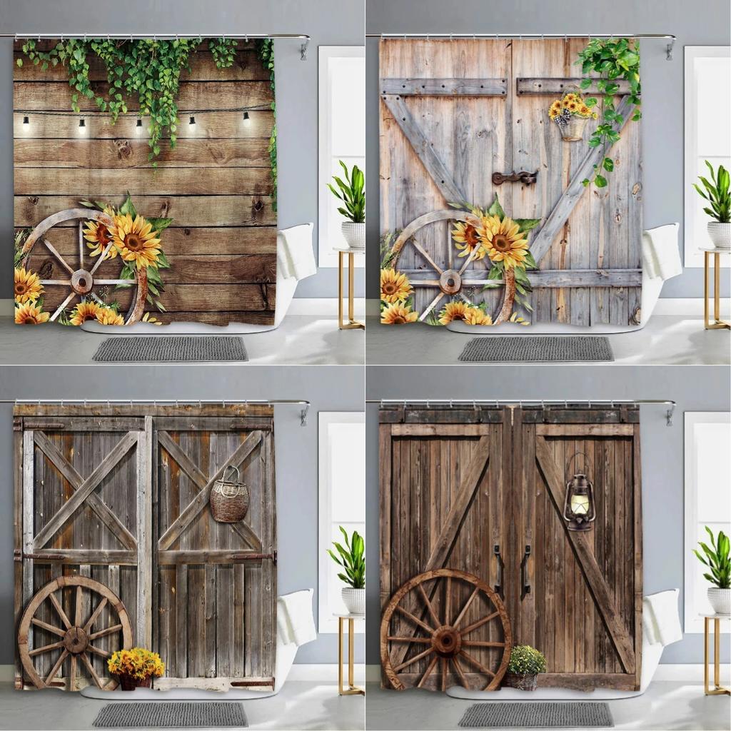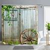 Vintage Rustic Wood Panel Shower Curtain Barn Door Floral Botanical Green Leaf Barn Farm Polyester Fabric Bathroom Decor Curtain