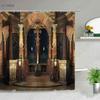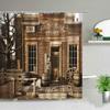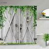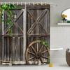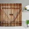Retro Dřevěné Dveře Sprchový Závěs Sada Rustikální Starý Vintage Stodolové Dveře Látkové Koupelnové Závěsy Statek Koupelnová Dekorace Sprchové Zástěny Háček