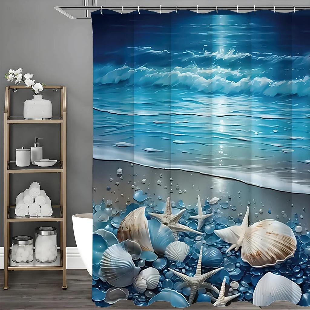 Noční oceán pláž hvězdice mušle sprchový závěs, koupelnový dekorativní sprchový závěs, vodotěsný sprchový závěs s háčky